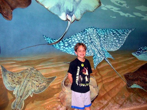 Adam at the entrance to the ray and skate exhibit. I was expecting a small local museum like some of the marine museums we visited in the Outer Banks and on the Delaware shore, and we were all pleasantly delighted to discover that in addition to the lighthouse the museum was far larger than we expected, with several exhibits on local archaeology and paleontology, an exhibit on the Patuxent River and the War of 1812 and a history of shipbuilding in Calvert County.