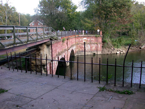 Here is the aqueduct bridge itself, damaged in a flood and never fully restored. The house in the background is Riley's Lockhouse, now managed by the Girl Scouts who give tours, churn butter and exhibit 19th century quilts. We took the tour and got to sample the homemade butter.