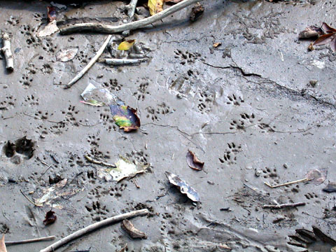 A wide variety of animals live in the woods, from squirrels and chipmunks to snakes and frogs to deer, raccoon, rabbits and a great many birds.
