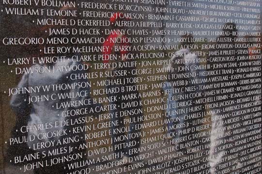 Vietnam Veterans Memorial, Washington, DC, with reflections of viewers on the surface. I assume everyone has seen photos of the full scope of The Wall's 58,000+ names.