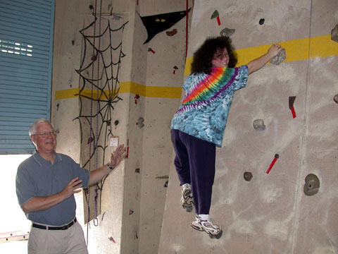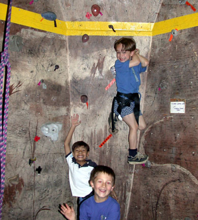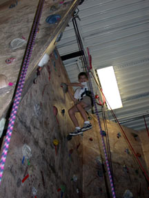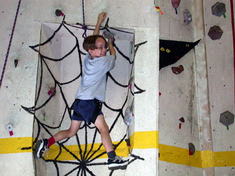 After Adam's party, Daniel decided he wanted his 10th birthday party at the climbing gym too. Here he is at the top of one of the vertical climbing walls.