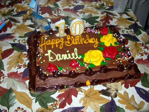 And here we are about to eat Adam's Yu-Go-Oh cake, baked by Paul.