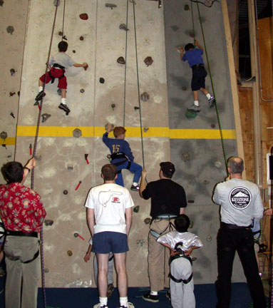 He wanted to do rock climbing, so since none of us know much about belaying, especially with seven-year-olds, we had 15 little boys at the gym -- the first all-boys party.