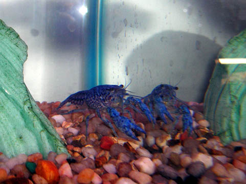 An electric blue lobster admires itself in the mirror.