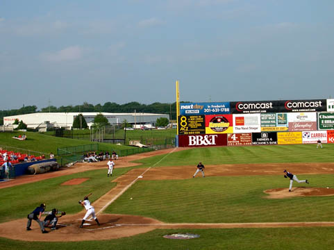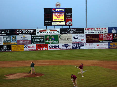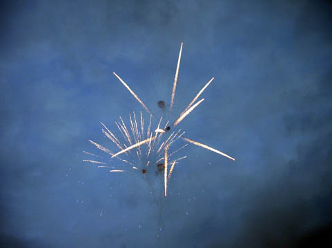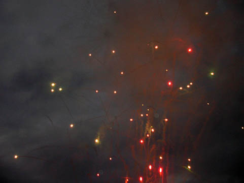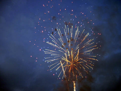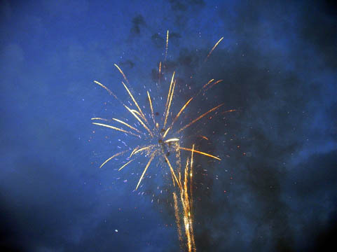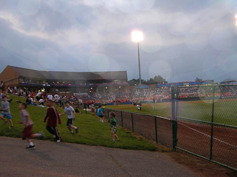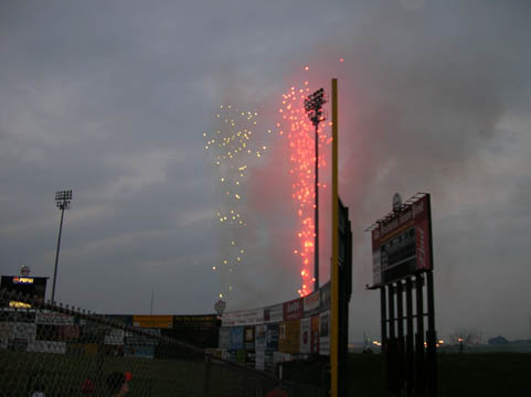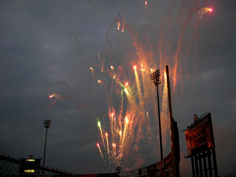 Fireworks at Harry Grove Stadium in between the two games of the double-header, which is why the sky looks still as light as it is.