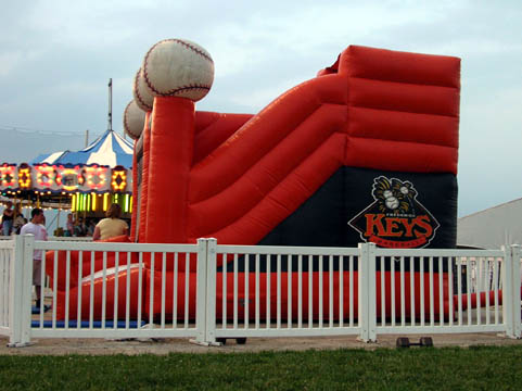 Why the kids love this stadium: inflatable slides, a carousel and an arcade...