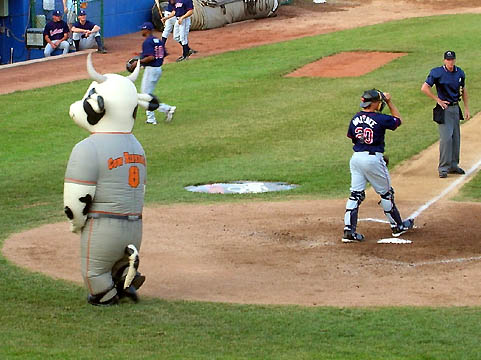 In between innings we got such entertainment as "Cow" Ripken Jr., who dueled with the Indians' manager on the sidelines as both showed off their grinding-and-thrusting dance moves, plus we all did "Y.M.C.A."...