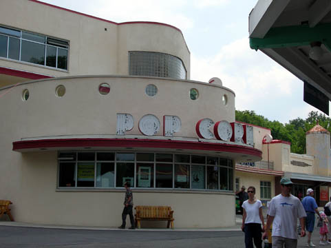 The popcorn stand in the arcade building, which now houses theater and artist-in-residence offices. The part with the towers behind the window houses Adventure Theatre and The Puppet Company.