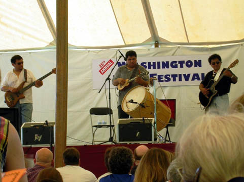 Mystic Warriors on the same stage by the playground. The guy in the middle can play the drum and pan flute at the same time, and he's also an excellent soloist on several different varieties of string instruments.
