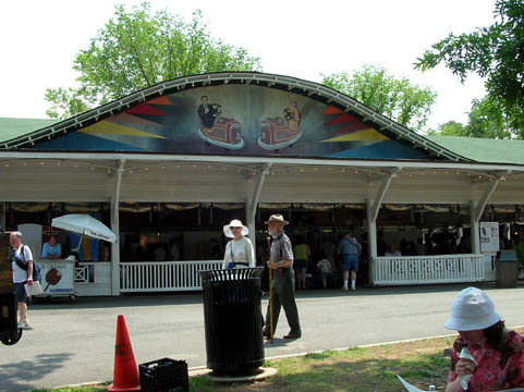 The bumper car pavilion, now empty of bumper cars and housing art shows and classes. In my childhood there were still derelict cars inside.