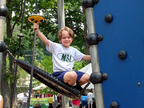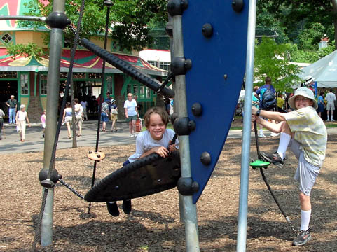 Adam on the play equipment by the ruins of the Crystal Pool.