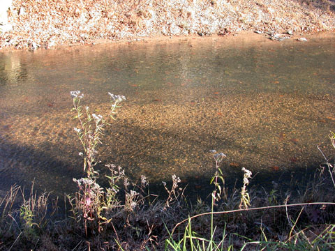 Compare this photo to the first one on this page; it was taken in the same spot, but the water level is much lower. The white on the ground is tiny shells left behind by the river.