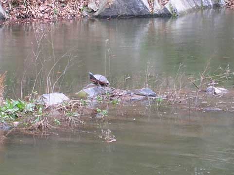 A snake in the wetlands on Olmsted Island at Great Falls.