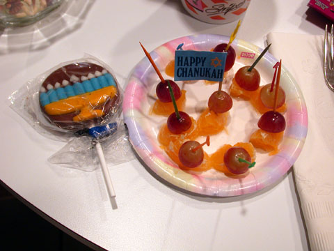 How we spent the night before Christmas 2005...playing dreidel. (I believe my father-in-law won, though that may be because Adam ate half his pieces before counting.)