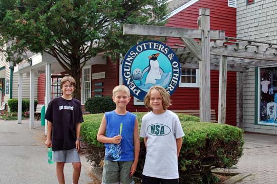 Adam's favorite store in the Olde Mistick Village shops. Not because he liked the clothes inside -- it was, in fact, closed -- but because of the penguin on the sign.