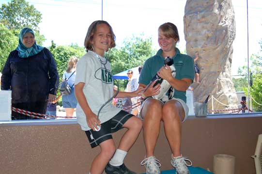 We went to the Mystic Aquarium's Penguin Contact Program, which Adam desperately wanted to do in lieu of having a birthday party. We got to pet two different penguins -- one which wandered around our circle in a classroom for half an hour while the caretaker talked about penguin diet, behavior, etc., and another which we took turns playing vet with, listening to its heartbeat, inspecting its beak and checking its wings.
