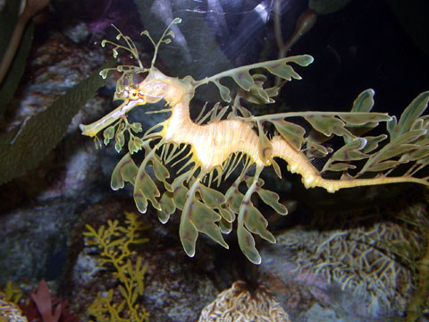 This leafy seadragon makes me think of Puff the Magic Dragon, though he's a relative of a seahorse.