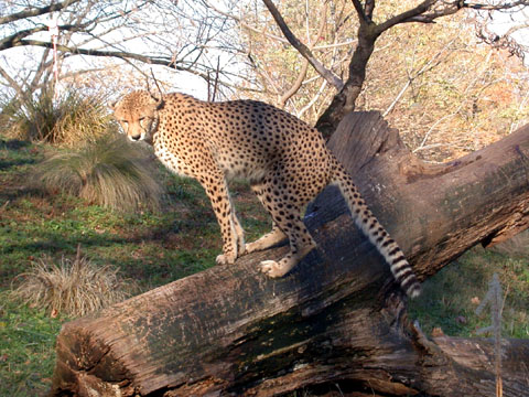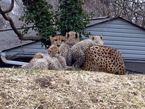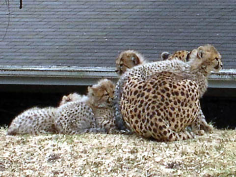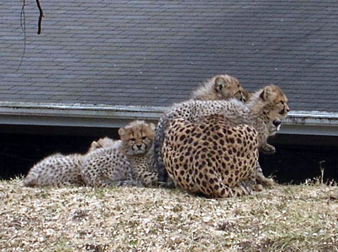 If this cheetah looked lonely in December 2004, it was because the birth of four baby cheetahs which necessitated isolating the female with her kittens.