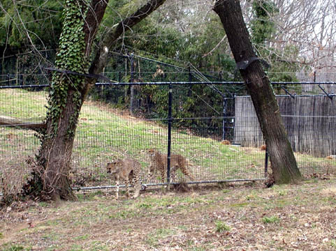 Presumably this male and female were placed in the same enclosure for mating purposes, but the male spent the whole day pacing, roaring and huffing quite loudly, so that he could be heard from quite a distance away.