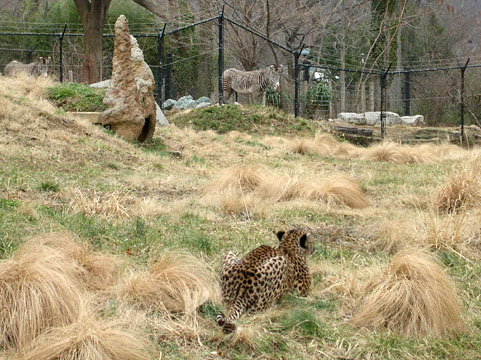The other cheetahs, meanwhile, were separated in different enclosures looking for entertainment. Does it seem cruel to put the zebras within easy sight of a cheetah who can't get at them, like waving a steak in front of someone's nose?