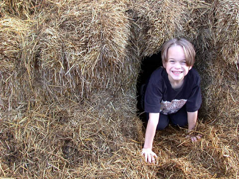 Phillips Farm has a hayride out to the pumpkin patch, which is actually mostly overgrown with vines at this point and appears to have had pumpkins artfully placed there in the morning so animals don't get at them at night.