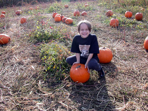 Adam and Paul found the perfect pumpkin for a jack-o-lantern.