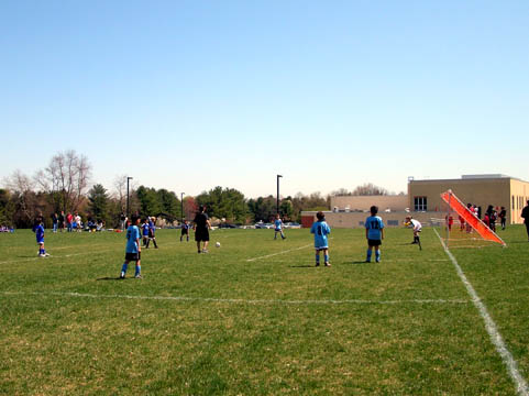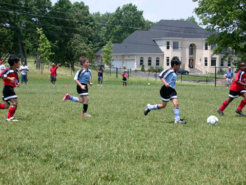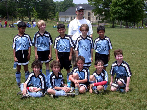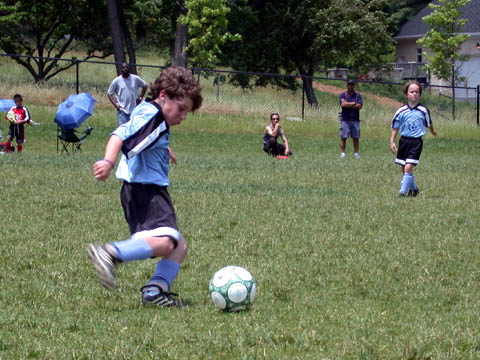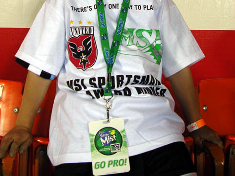 The team won a sportsmanship award with free tickets to DC United for the kids and discounted tickets for everyone else. Here is Moreno kicking what will be DC United's first goal, after the referee called foul when he was knocked down. Adu didn't play until the last ten minutes, when United was up 2-1 and seemed on track to win; he made an assist on the third and clinching goal by Christian Gomez, who also scored the second, while the first came from a Jaime Moreno spot kick.
