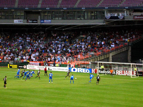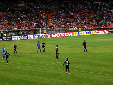 This was only the second MLS game I have ever attended, the first since Freddy Adu arrived in DC, and it was enormously fun. I loved being at a professional sports event announced in both English and Spanish. This is the man -- err, boy -- everyone wanted to see, number 9. I wondered how the older players who anchor the team felt about the screaming standing ovation Adu got when he came on the field.