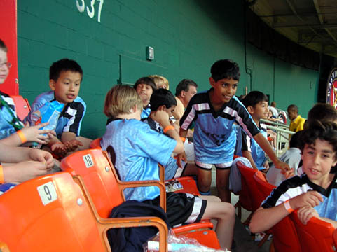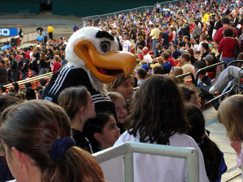 The mascot poses with some of the legions of kids at the game. I won't even pretend to be able to talk about strategy but it was a fast-paced game and far more fun to watch than soccer on television.