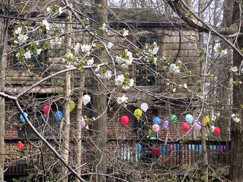 These are the azaleas in front of our house and our neighbor's in full bloom.