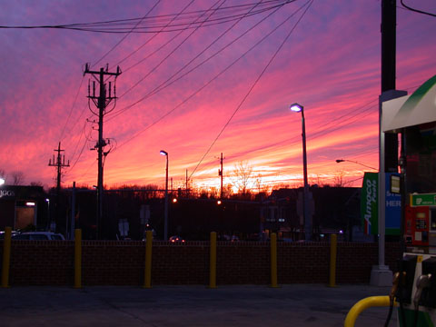 Christmas Eve 2004, an overcast sky at Great Falls later resolved into this amazing sunset (photo taken from Potomac Village gas station, sorry about all the clutter).