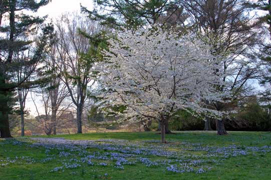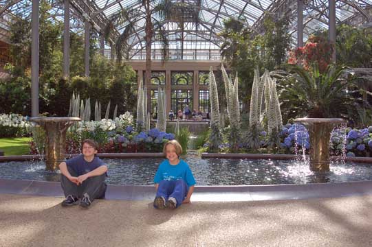 The two Du Pont estates, Winterthur and Longwood Gardens, straddle the Delaware-Pennsylvania border. Winterthur is the mansion built by Jacques Antoine Bidermann and Evelina Gabrielle Du Pont, where the house's fifth owner, Henry Francis Du Pont, collected American furnishings and arts and crafts that he long intended to turn into a museum. We walked through the extensive gardens and took the house tour, which covers less than a fourth of the actual rooms. The original family fortune was made selling improved gunpowder during the Civil War, and the collection amassed with the inheritance is astonishing: a Gilbert Stuart painting of George Washington, a set of dishes owned by the Washingtons, a set of tankards made by Paul Revere, the Monroe china from the White House (one of 50+ sets of china), a closet filled entirely with candlesticks, a room of Empire furniture, lots of early American cut glass and musical instruments. The grounds have an Enchanted Woods section with a stone circle, labyrinth, faerie cottage and lots of other neat things for kids as well as spectacular flowering trees. From Winterthur we went to Longwood Gardens across the Pennsylvania border, where Pierre Du Pont's house is now a museum of horticulture and where there is a massive conservatory, water gardens, topiary garden, azaleas not quite in season and a tower with waterfall.