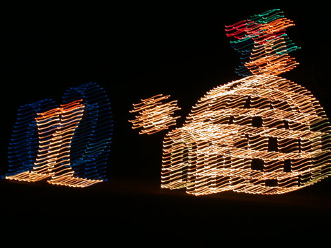 There are also more secular Christmas displays than I'd prefer, like Santa being pulled by Rudolph et al (and no Chanukah or Kwanzaa-specific images), but what can you do? In our case, we go anyway.
