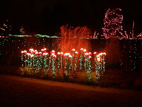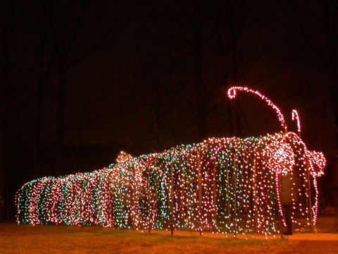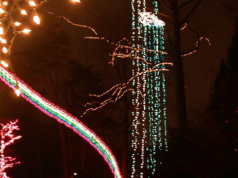 On the last day of winter vacation, since we had to pick Daniel up from his friend's house near Wheaton Regional Park, we went to the Brookside Gardens' walk-through Garden of Lights. This is the sea monster in the fountain where, in summer, frogs hide between the plants.
