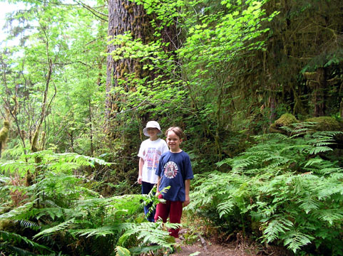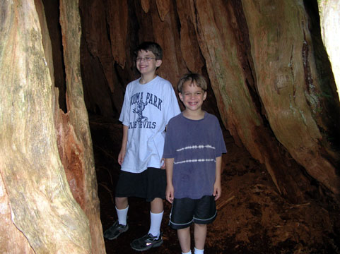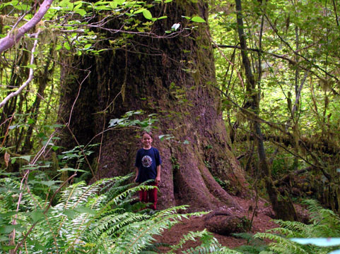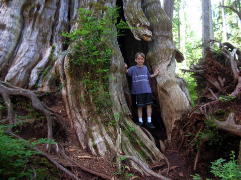 Here's Adam inside the trunk of an enormous red cedar tree in Quinault Indian territory.