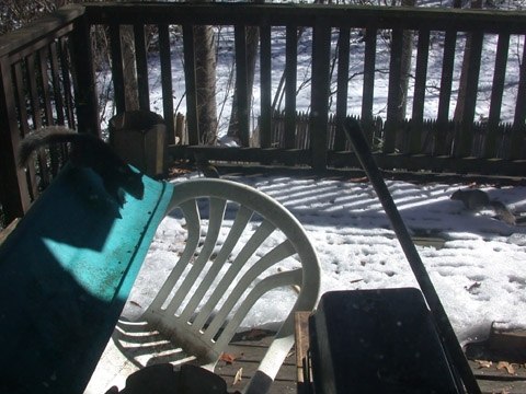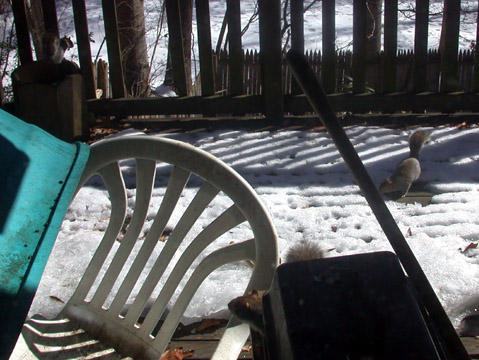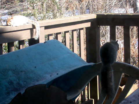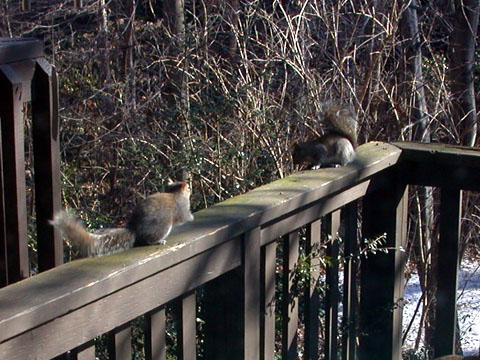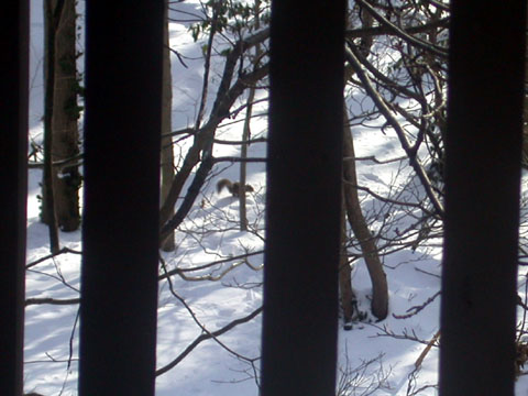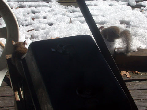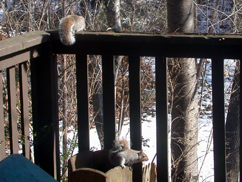 One snowy day, Jack and Stephen's deck was boarded by a foreign squirrel! French, we suspect, though it could be Spanish or Canadian or Virginian.