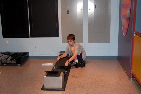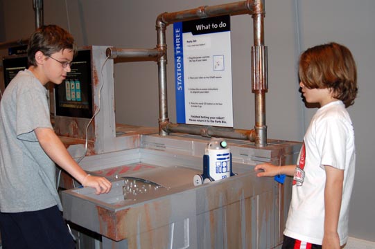 Adam and Daniel test their mini-R2 unit.