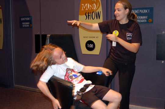 ...and gets spun around in a chair that was supposed to make him dizzy. No such luck.